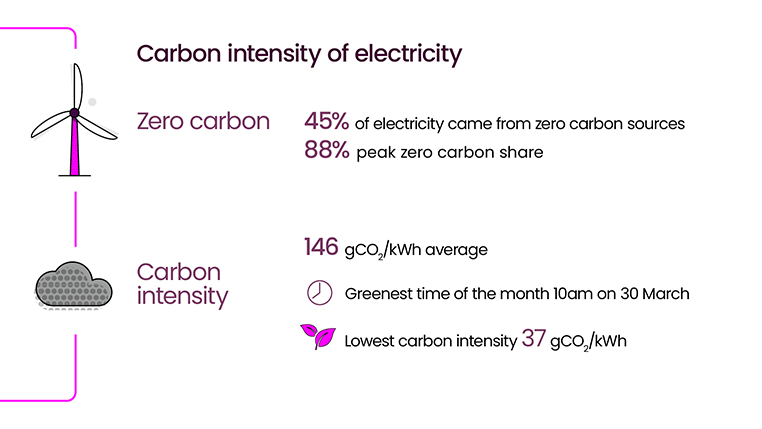 Zero-carbon sources made up 66% of our electricity, reaching a peak of 91% on 30 November at 5am.