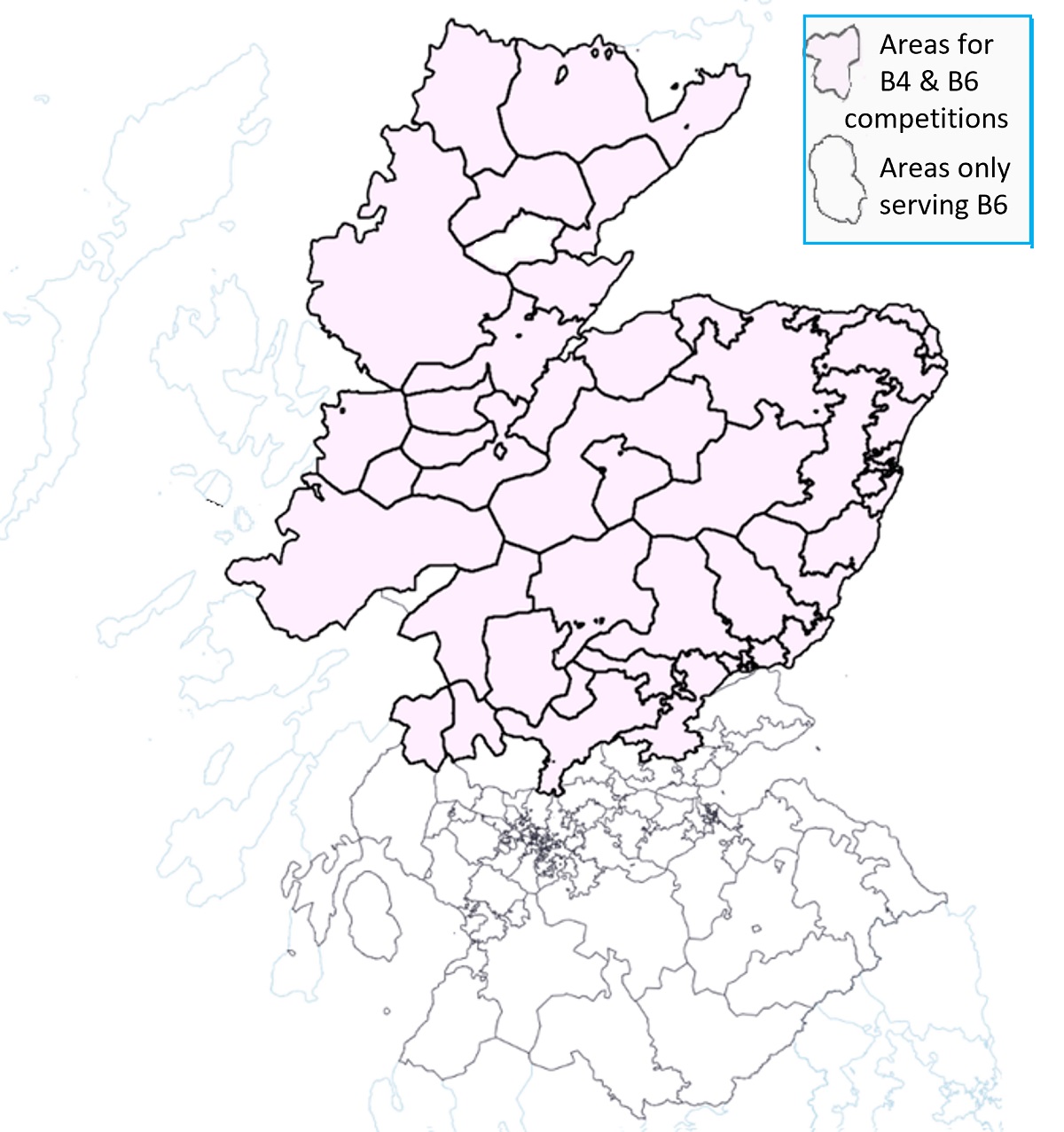 This shows the potential catchment areas for the Local Constraints Market in Scotland.