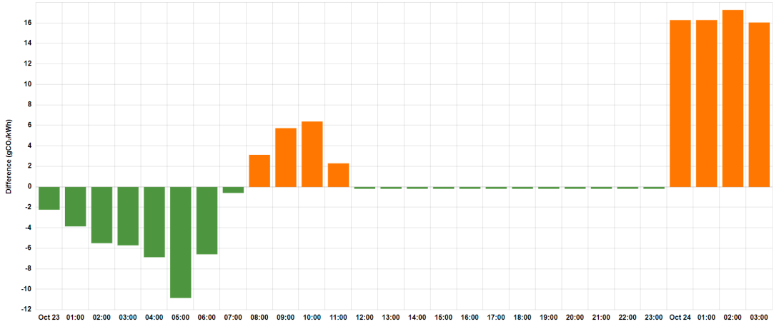 The graph below shows the impact on carbon intensity of our actions each hour across a day last week.