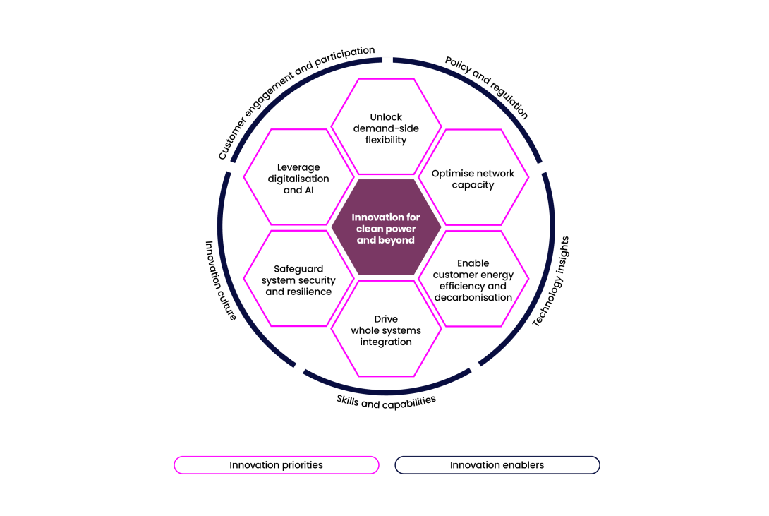 The strategy identifies six innovation priorities. These areas require accelerated innovation to achieve clean power by 2030 and begin preparing the whole energy system for net zero by 2050.
