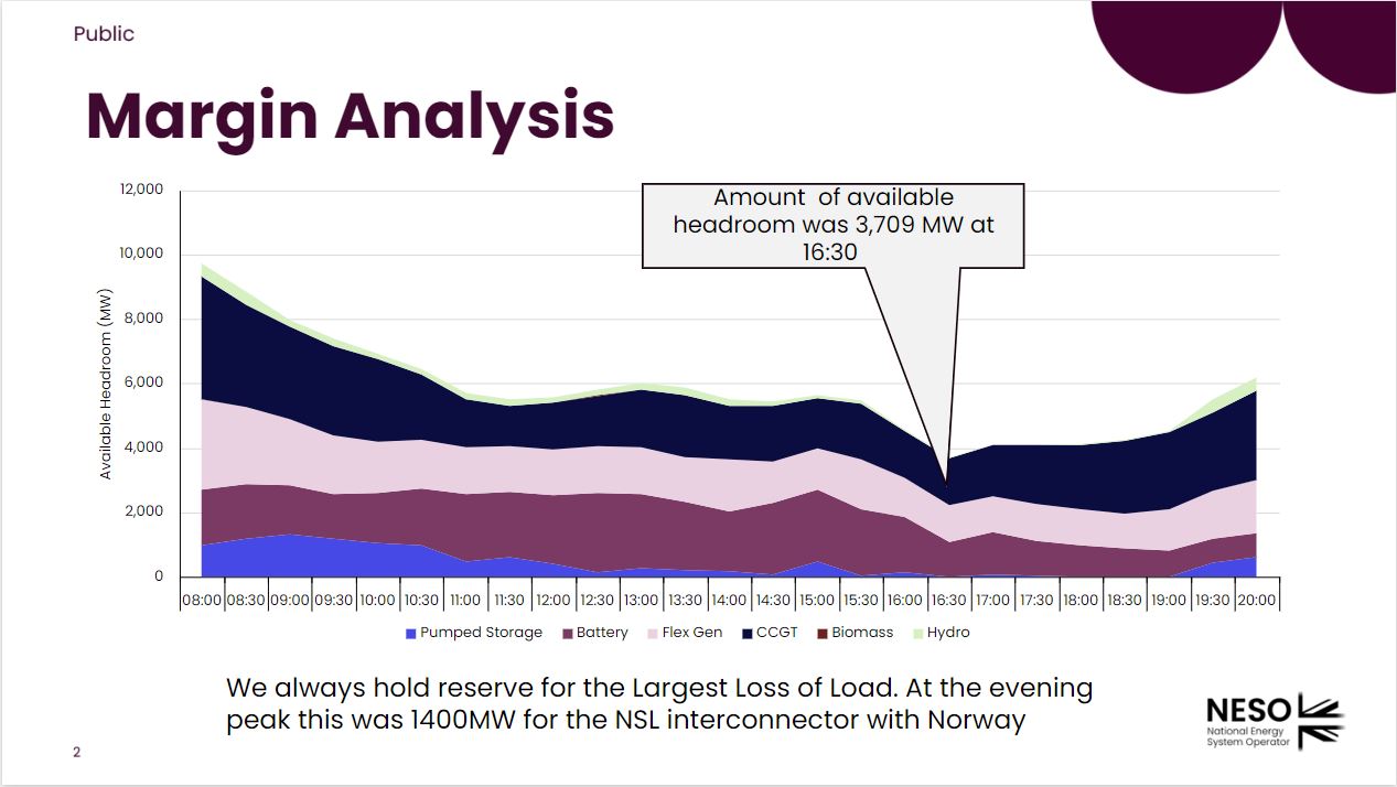 The headroom graph is a summation of all MWs that could have been available to NESO should they be needed. This contains additional available capacity on units or providers already generating, or that were available.