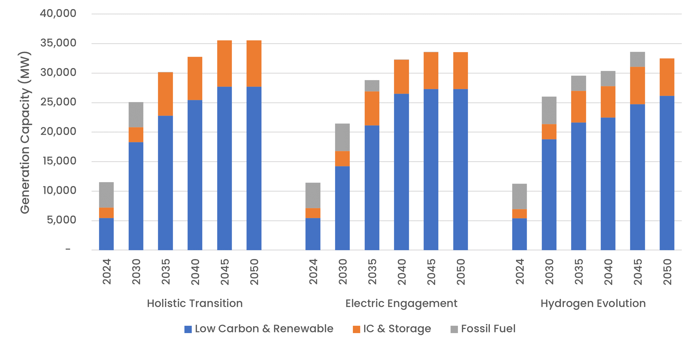 From 2030, there could be further interconnector and storage connections in this region. Demand is steady in the short term with growth expected from 2030 out to 2050.