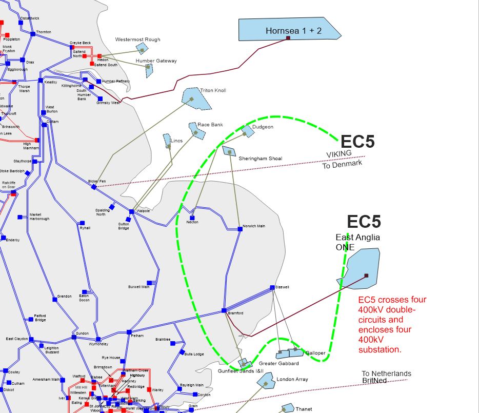 The boundary capability is limited to 3.3 GW due to a voltage constraint for a fault on the Pelham-Bramford-Braintree 400kV circuits.