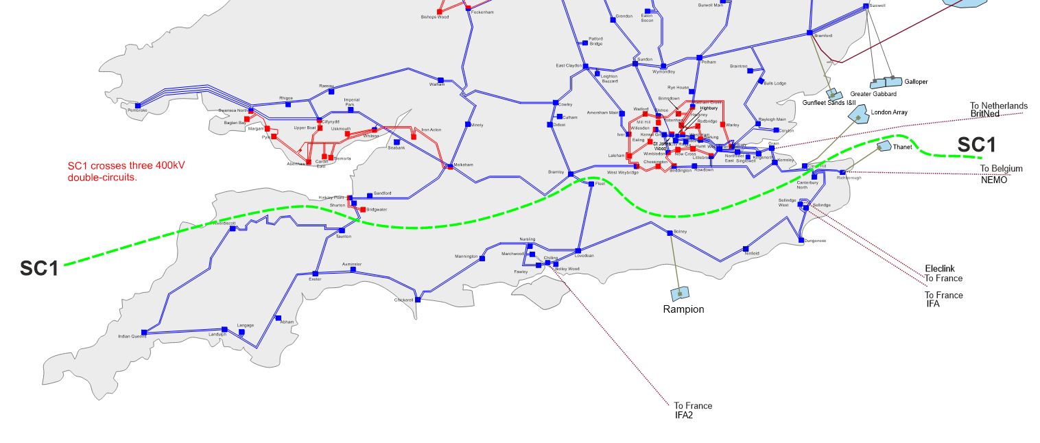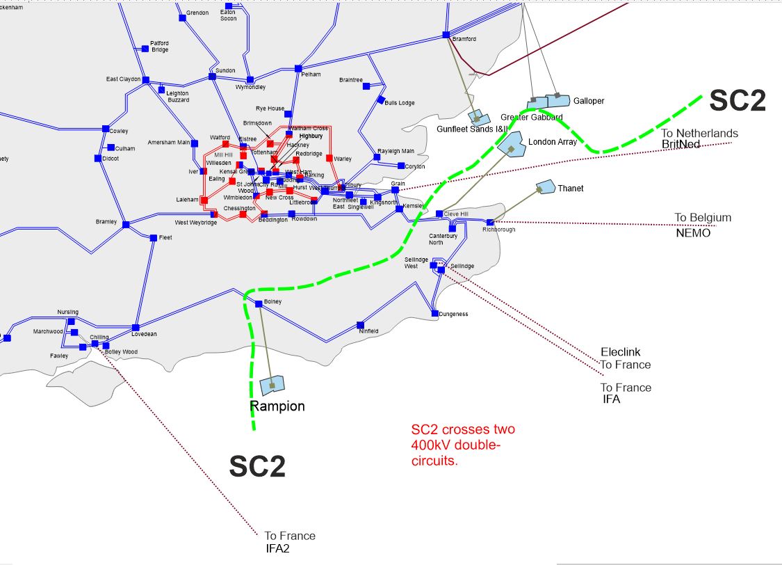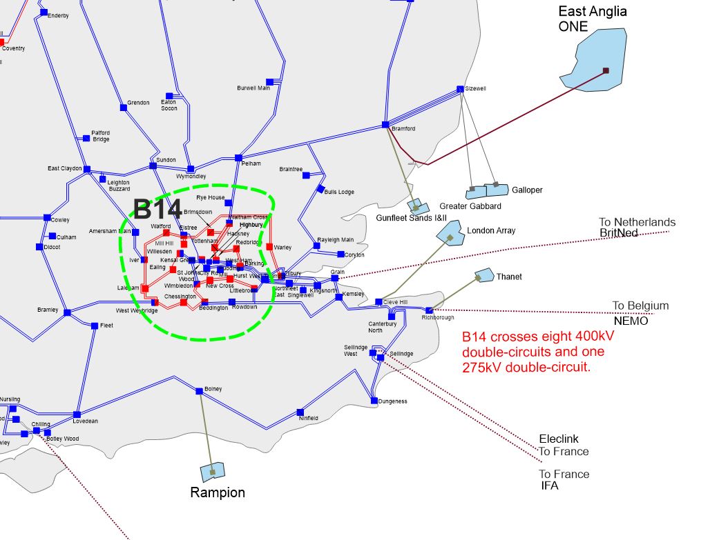 The circuits entering from the north can be particularly heavily loaded at winter peak conditions. The circuits are further overloaded when the European interconnectors export to mainland Europe as power is transported via London to feed the interconnectors along the south coast.